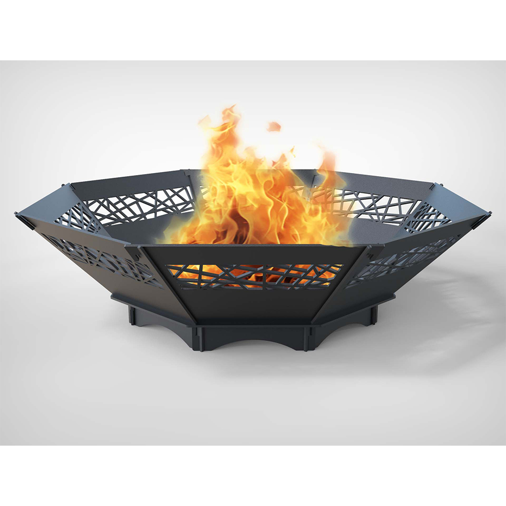 • Kialakítás: Ez a tűzrakó geometrikus, rácsos mintával rendelkezik, amely egyedi és modern megjelenést kölcsönöz neki.